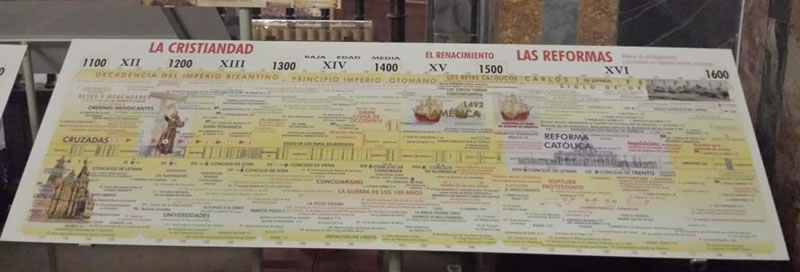 A la entrada del colegio se ha podido visitar una exposición de Historia de la Iglesia cedida por FECOM, una fundación para la Evangelización y la Comunicación que se propone como objetivo conseguir que la Historia del Camino de la Iglesia y de la Humanidad, a través de este “Historiograma 2.000 Años de Cristianismo”, sea accesibles a todos los públicos.
