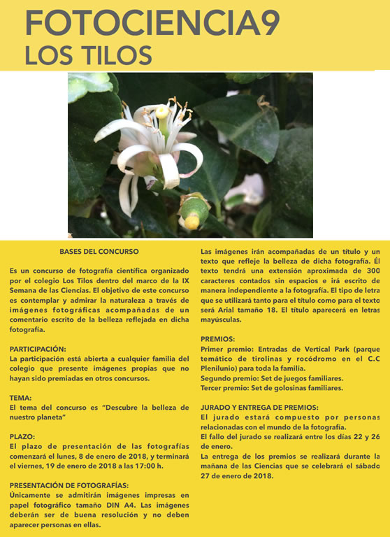 Leer másCon motivo de la próxima celebración de la Semana de las Ciencias el colegio convoca la primera edición del Concurso Fotociencia. Se amplia el plazo de presentación hasta el 24 de Enero. Os dejamos las bases para que las podáis consultar y ¡Suerte!