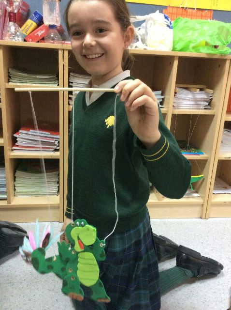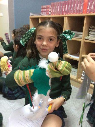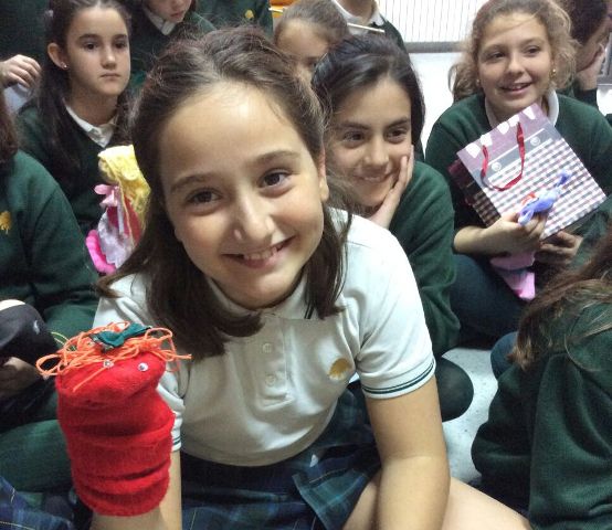 Después de leer un libro en vacaciones de navidad, las alumnas de este curso han escogido el personaje que más les gustó y lo han convertido en una marioneta. Luego han representado diálogos sencillos para sus compañeras.