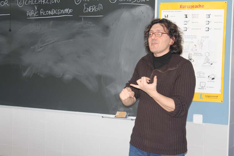 El señor Siles no es propiamente una “visita”, porque es padre del colegio. Aunque profesionalmente se dedica a otras tareas, es experto en astronomía y muy aficionado a los temas científicos. Con ocasión de la semana de las ciencias ha preparado y expuesto una presentación muy documentada sobre las capas de la atmósfera.